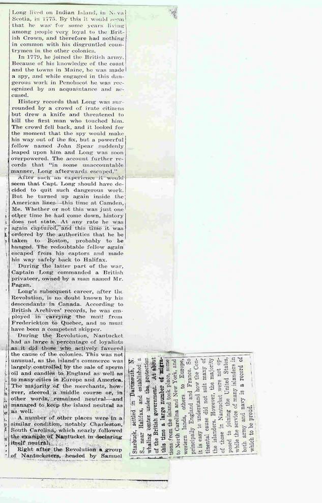 Figure 8 – Article sur le capitaine John Long dans une publication intitulée The Selectmen, 1937. Il le confondait avec Philip Long.