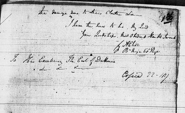 La visite et les rapports du major Elliott ont certainement retenu l’attention du gouvernement, qui a repris l’approvisionnement des colons à l’automne. Une série de lettres et de correspondance de John Dall fait partie de la même collection à Bibliothèque et Archives Canada. Nous en présentons ici quelques extraits à titre d’information, mais aussi pour illustrer les difficultés constantes auxquelles les colons étaient confrontés en raison de l’isolement et du relief accidenté.