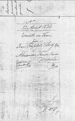 12 août 1824 Vente de Terre par Jean Baptiste Long à Alexandre Fraser Écuier