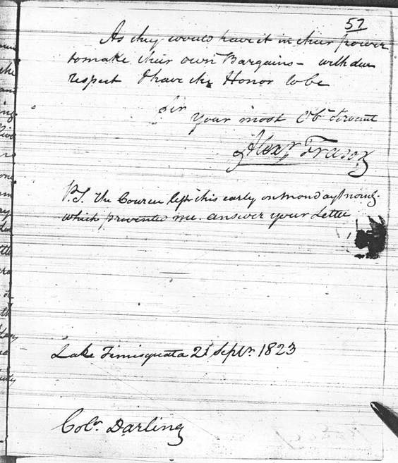 Lettre d’Alexander Fraser au colonel Darling, datée du 25 septembre 1823, à Québec.[xix]