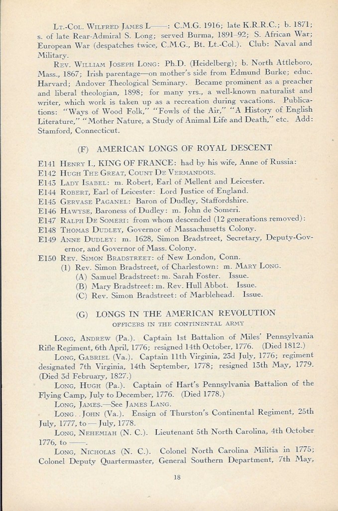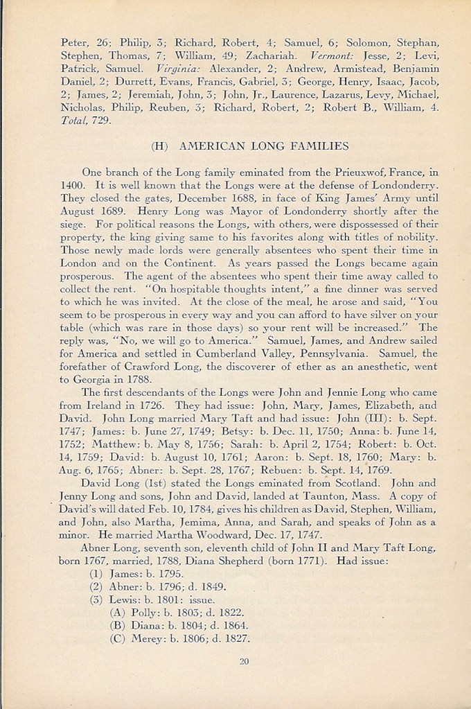 Philip Long – ancêtre des familles Long-Lang