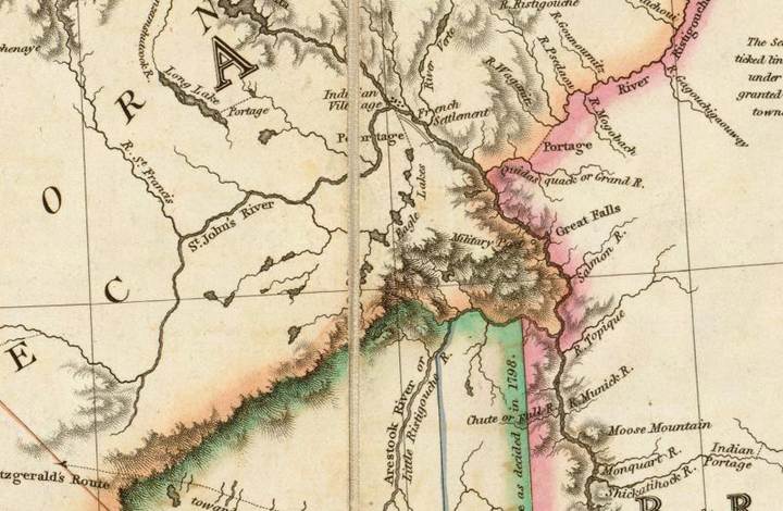 Malheureusement, le sens de cette description était très imprécis, car le vaste intérieur de la région n’avait pas encore été exploré ni cartographié. Cette description reflétait donc une méconnaissance de la géographie réelle de la région. Ce point est crucial, car il a influencé les intentions des deux parties lors de la fixation de leur frontière en 1783. »