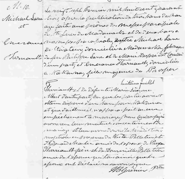 Mariage entre Michel Long et Emerance Thériault le 27 février 1843