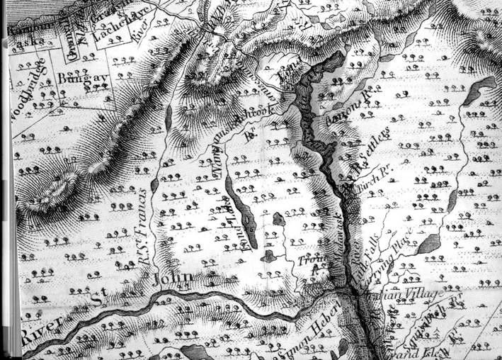 Figure 146 – Carte topographique de Bouchette – Montrant Clair (à l’extrême droite, là où Fish et St John se rejoignent) jusqu’à la confluence de la rivière St Francis et de St John.
